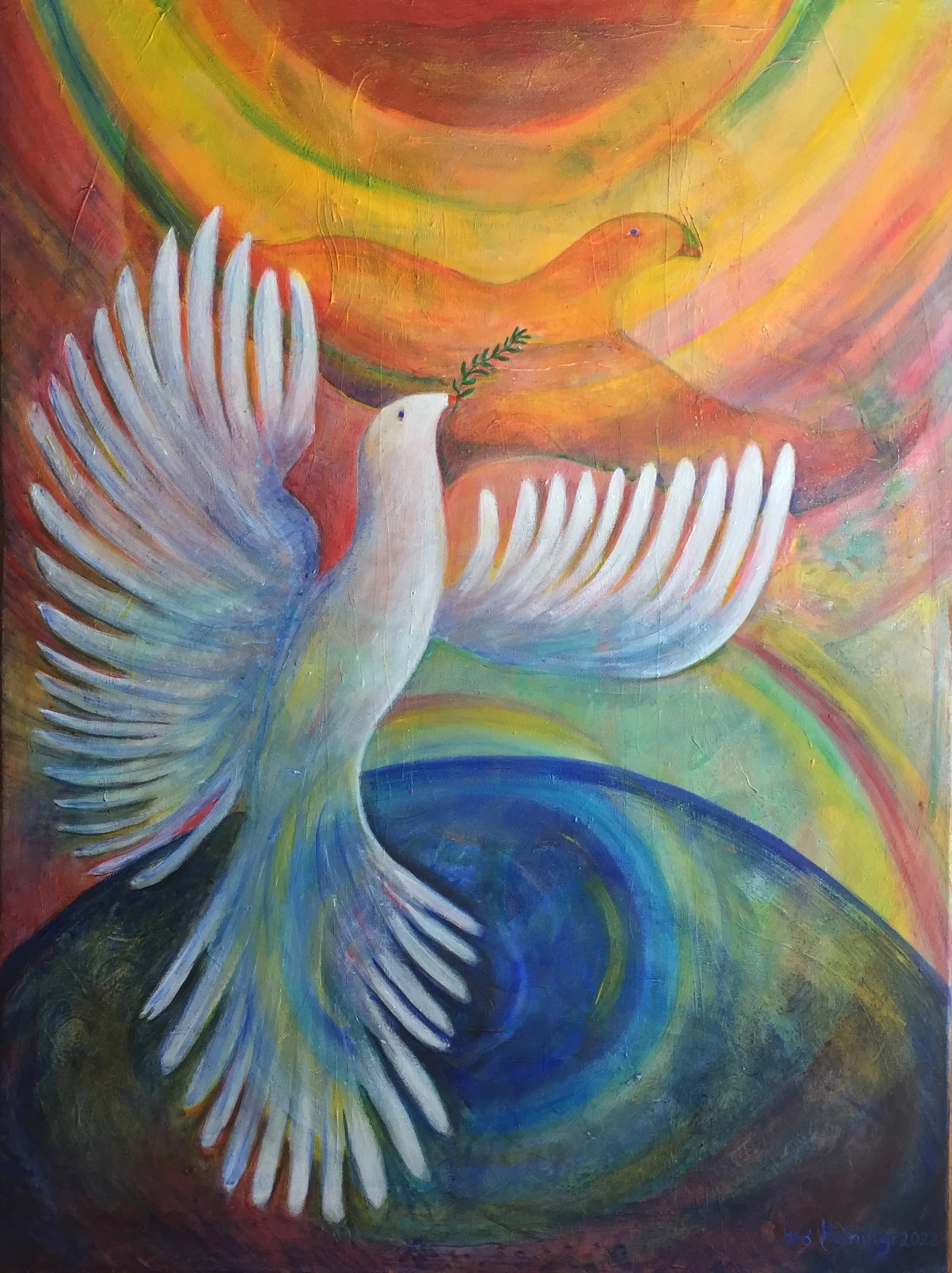 Gro Heining | Norway Nov 21 Written By ICM Gestora Cultural, SL gro-heining.no The Peace Dove and the Phoenix. Acrylic on canvas. 76 x 102 cm. 2022. ICM Gestora Cultural, SL https://www.icmgestoracultural.com