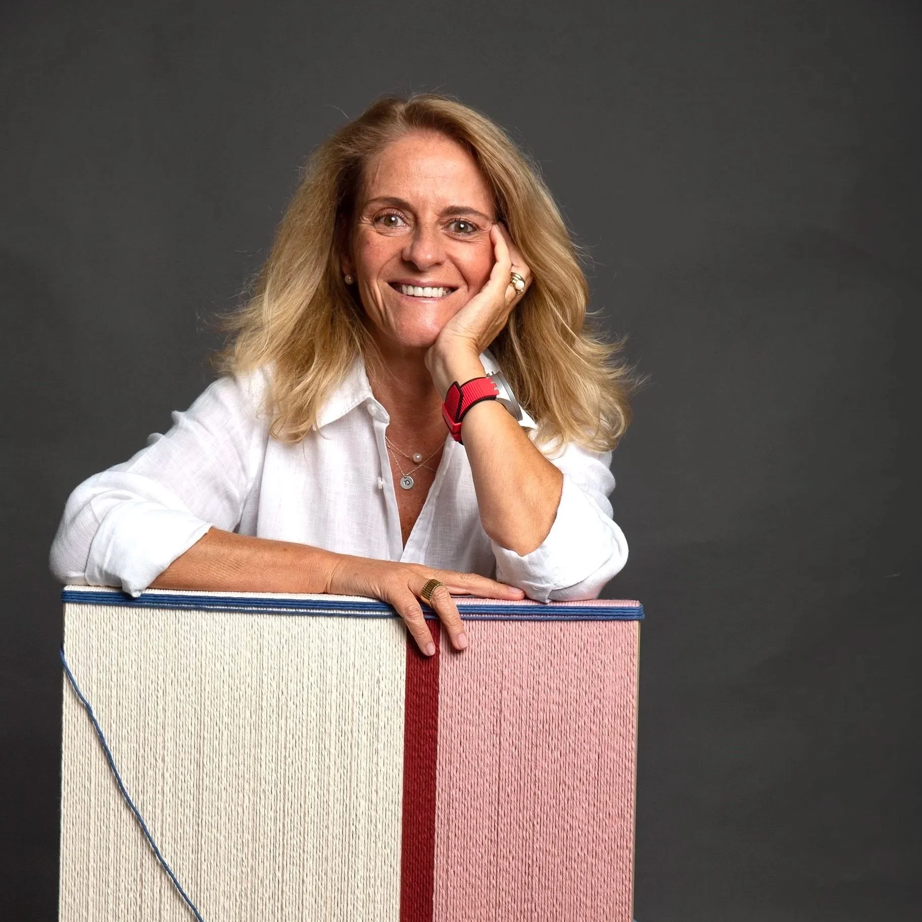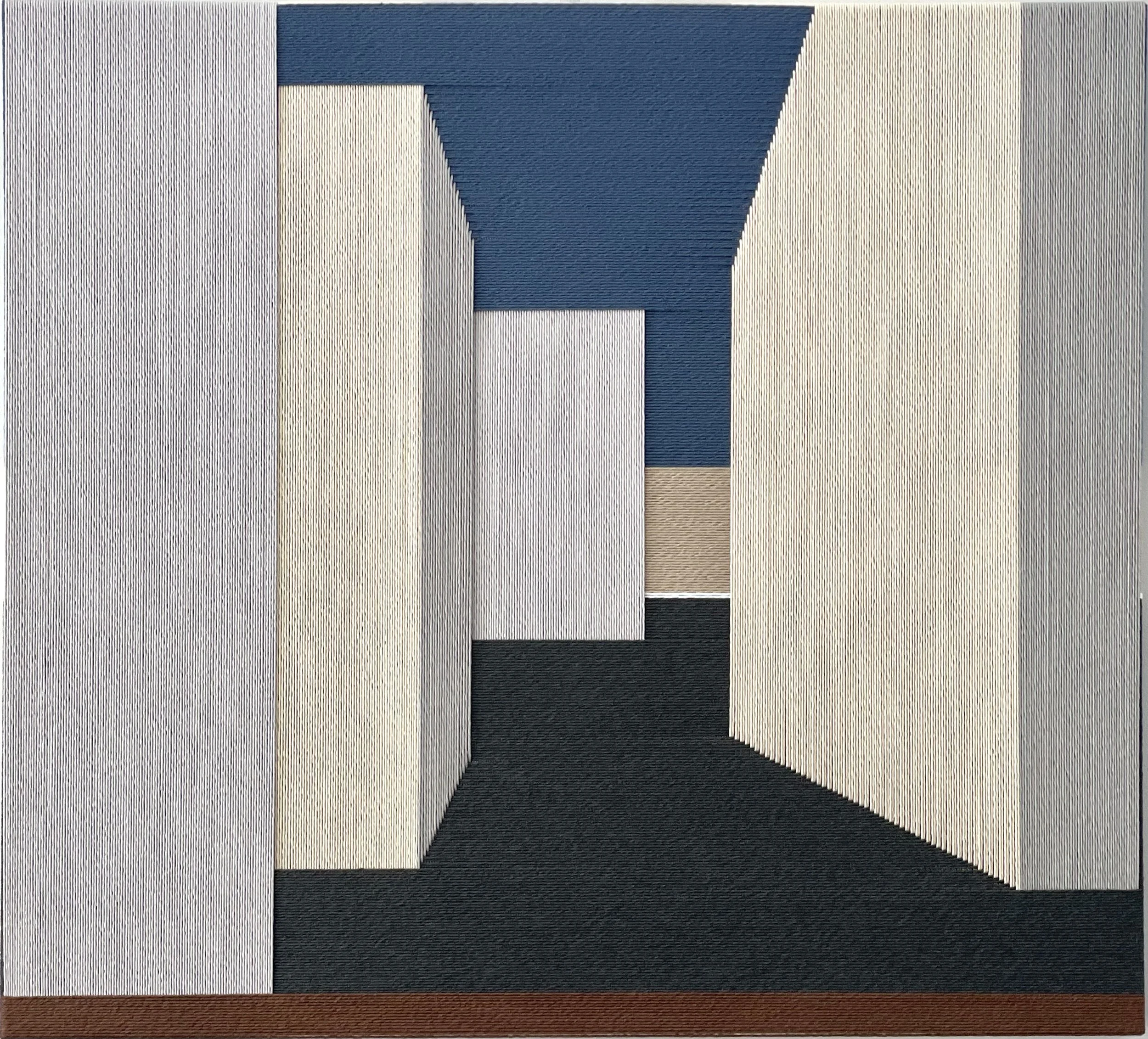 Rosarinho andrade, born in Lisbon, Portugal, in 1960. With a degree in Medicine, worked almost 30 years in Pharmaceutical Industry. Arts have always played an important role: drawing, embroidery, painting, music, are examples of artistic engagement throughout her life. In 2019 decides to embrace a dramatic change in her life and studies Interior Design (ID) where she has a first contact with the textile world. She started her artistic journey in 2022 when she first learns this tapestry technique, called Woven Frames. These 3 years have been a journey of self discovery and also of finding her own aesthetic trying to give this technique a different and less traditional application and a more contemporary feel. With a passion for Architecture, Geometry and Color she tries to transpose to her frames the learnings acquired during the ID course, for example, how to convey depth or perspective in a 2D support, which is clearly reflected in her work so far. The selection of materials and colors is largely inspired by what she sees: nature and the urban landscape are inexhaustible sources of inspiration. She likes her work to convey order, calm, peace, but above all, aesthetic beauty. She uses preferably Portuguese brands, that warrant a sustainable production, and 100% natural fibers; her preference goes to cotton yarns, single twist, cords, braided, but also jute and linen.