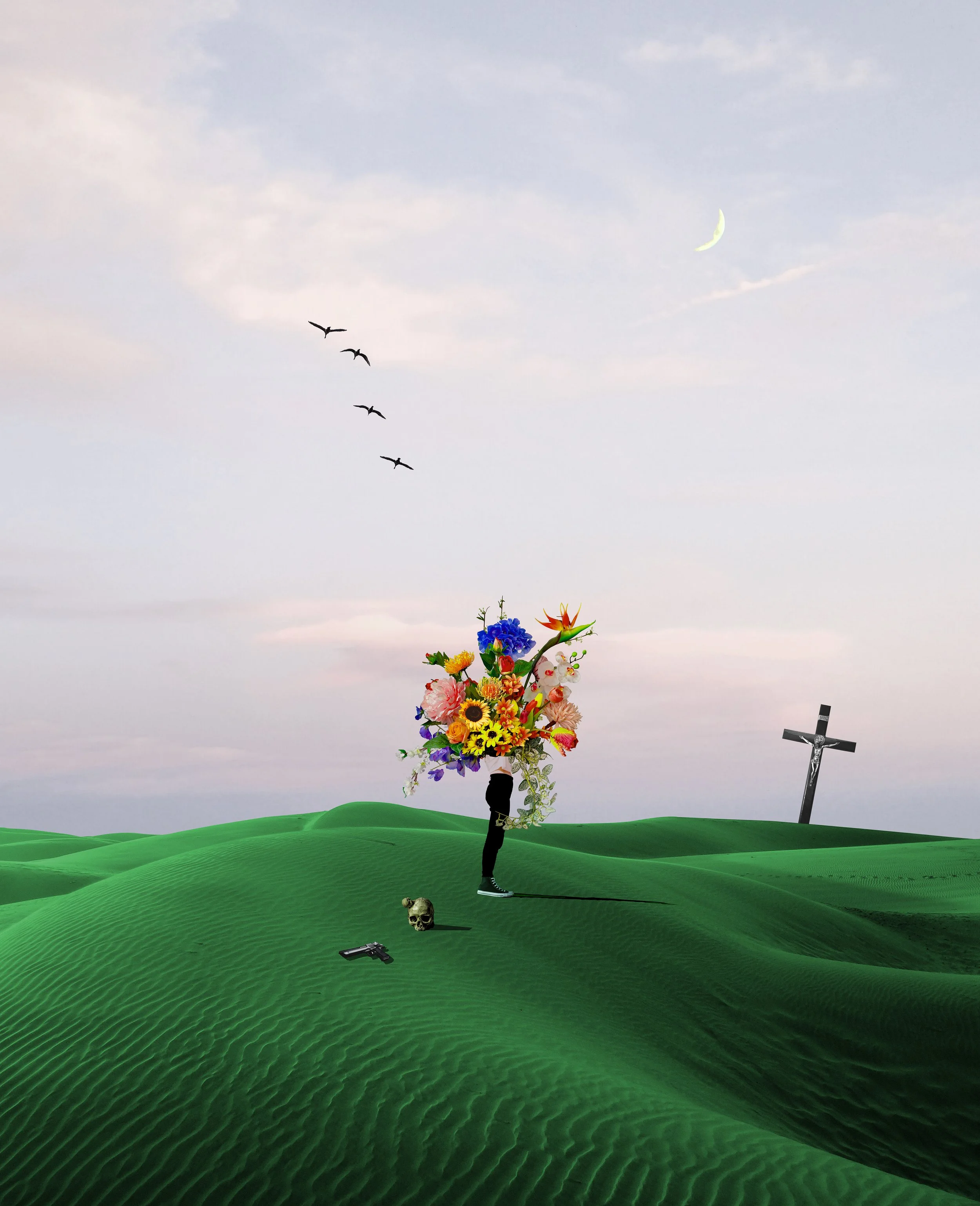 Living and working in Tokyo he uses a computer as his tool of choice to create works with an underlying themes such as religion, mythology, space, etc. Characterized by a style that gives a slightly shocking impression, he incorporates and weaves narrative elements, mathematical elements, and philosophical elements creating a modern perspective of religious paintings and Buddhist paintings as well as works with an original unique origin.