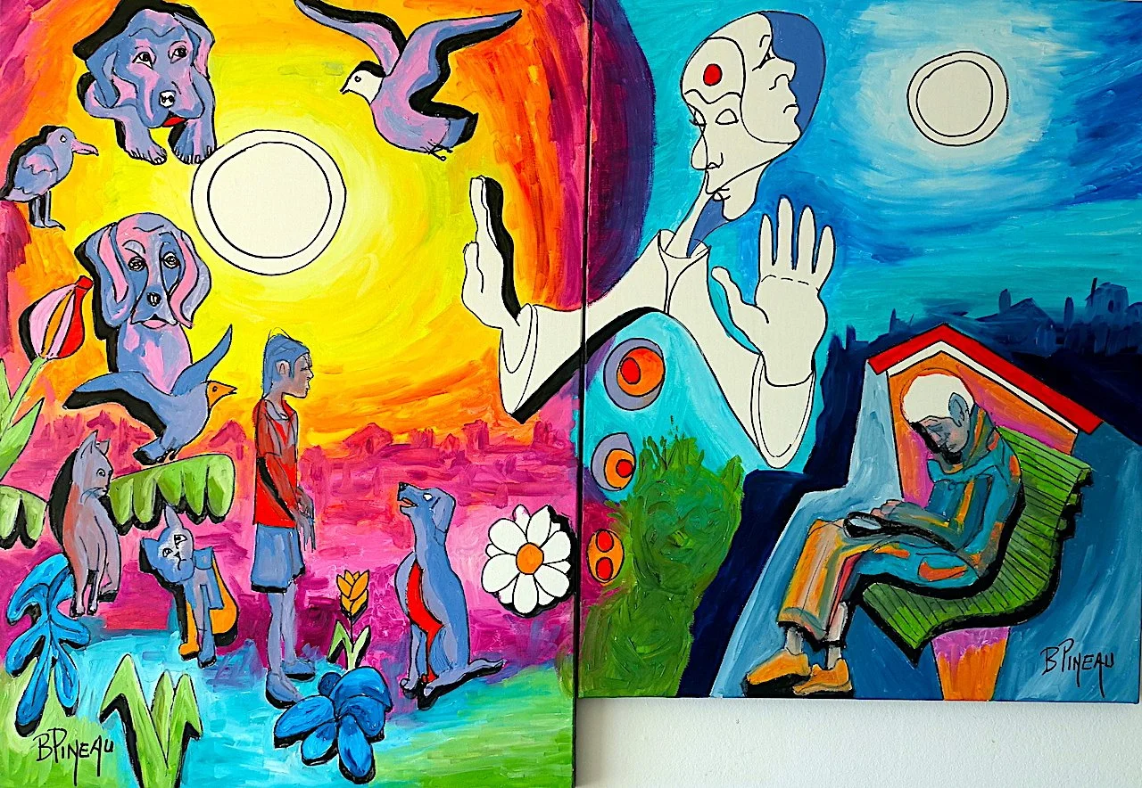La peinture de cet artiste s’inscrit dans une quête intérieure, à la croisée de l’art et du sacré. Il explore un sacré intime, accessible à tous, loin des dogmes et proche de la conscience. Inspiré par des traditions comme le Taoïsme, le Bouddhisme, l’Alchimie ou la Kabbale, il peint avec ou sans croquis, après un moment de méditation, laissant parler sa conscience à travers des formes et symboles universels. Chaque œuvre est une étape d’un chemin spirituel. Numérotées dans l’ordre de leur création, ses peintures forment un récit vivant. Certaines peuvent devenir, pour celui qui regarde, des déclencheurs de prise de conscience. En Inde, on appelle cela un Upaguru.